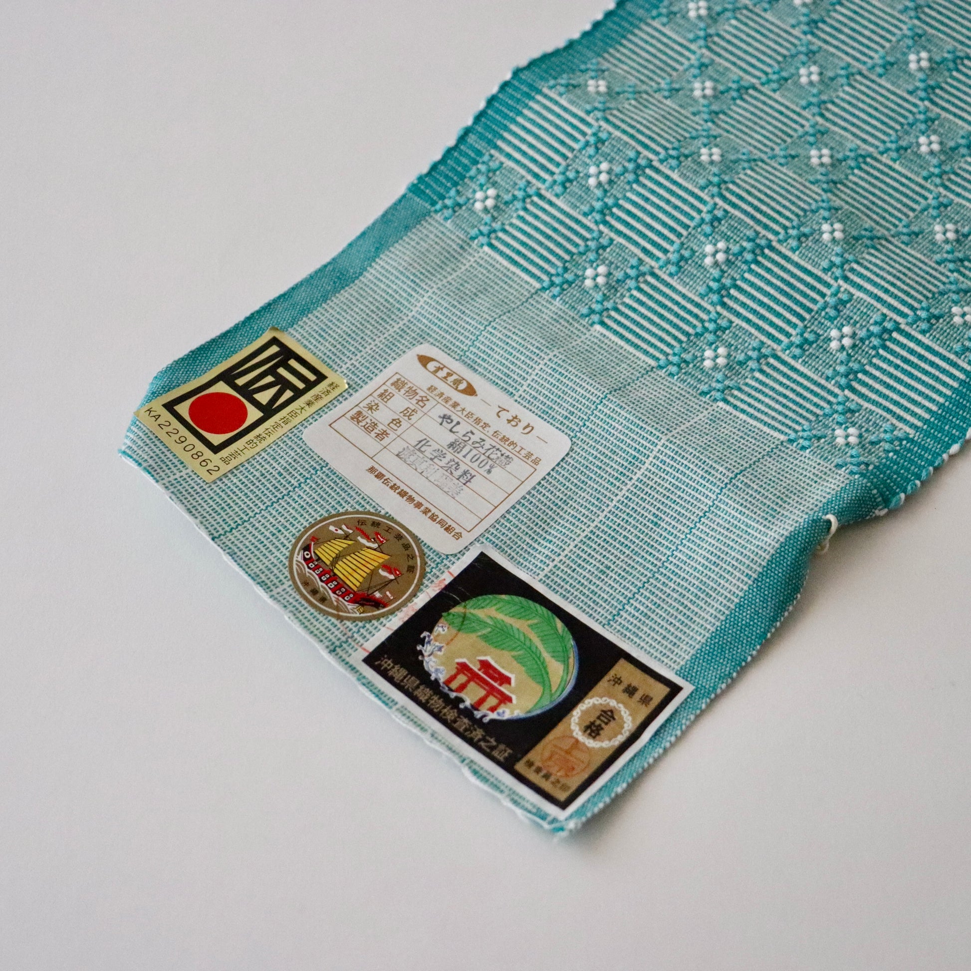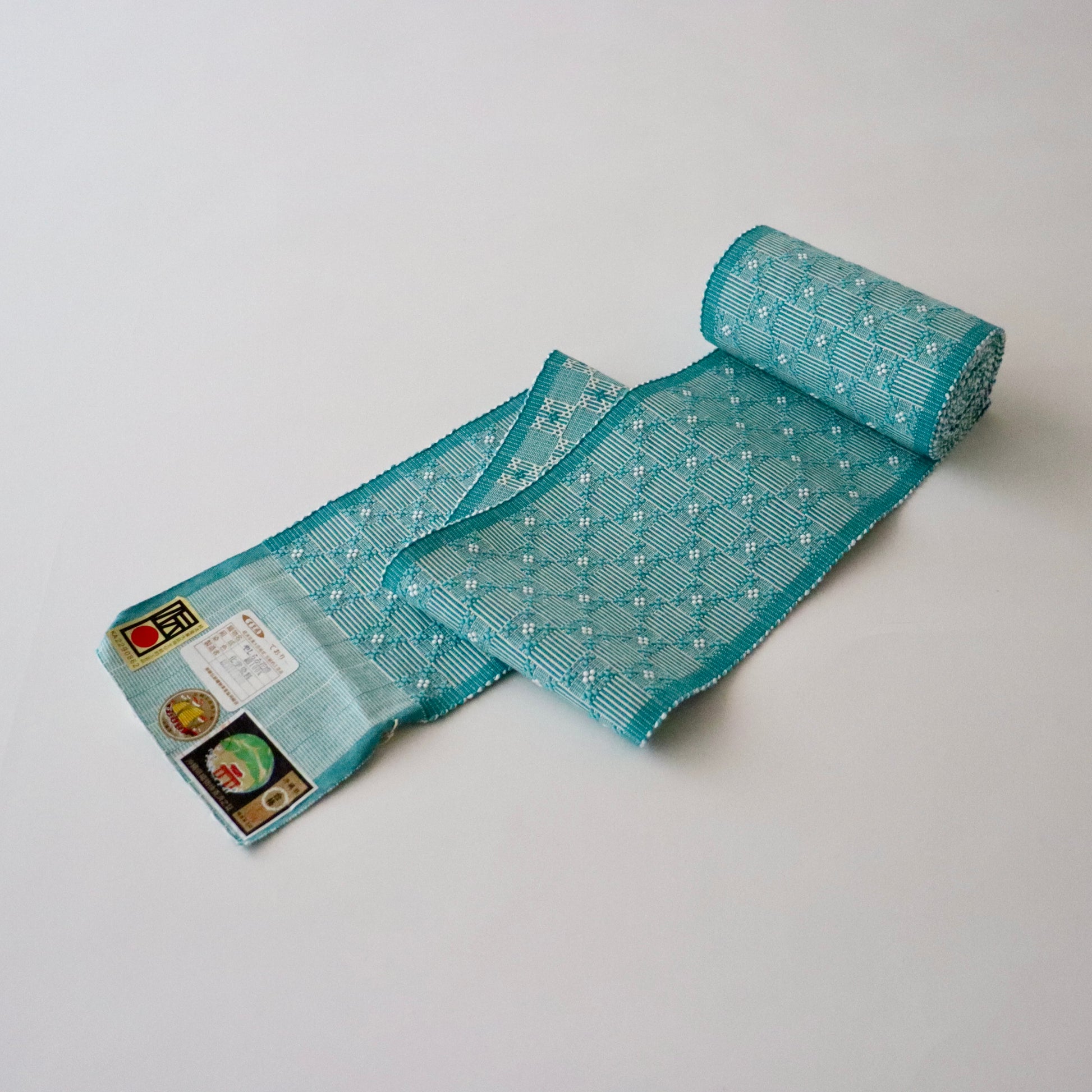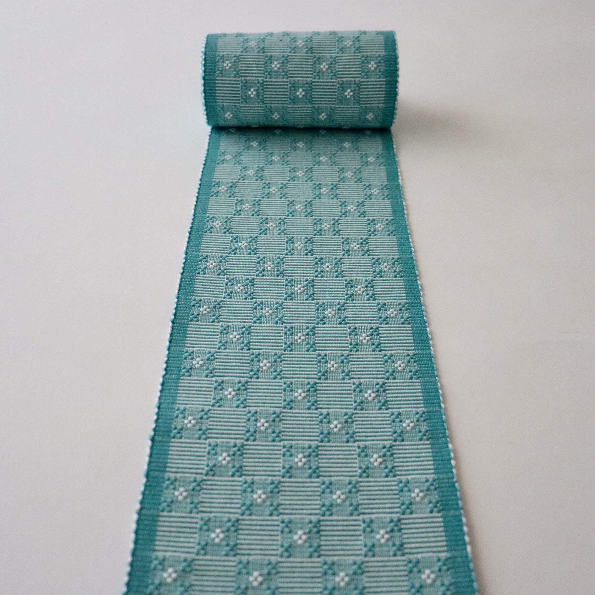 沖縄県で制作される木綿素材のやしらみ花織の四寸帯。